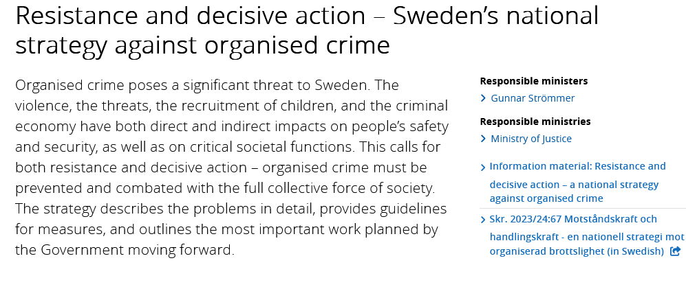 Take a page from Nayib Bukele’s rulebook and build a high-capacity prison. Round up all the gang members and hold them there. Sweden is not El Salvador, of course, and so the gang members should be held in the prison until they agree to voluntarily depart Sweden or can be forcibly deported.
