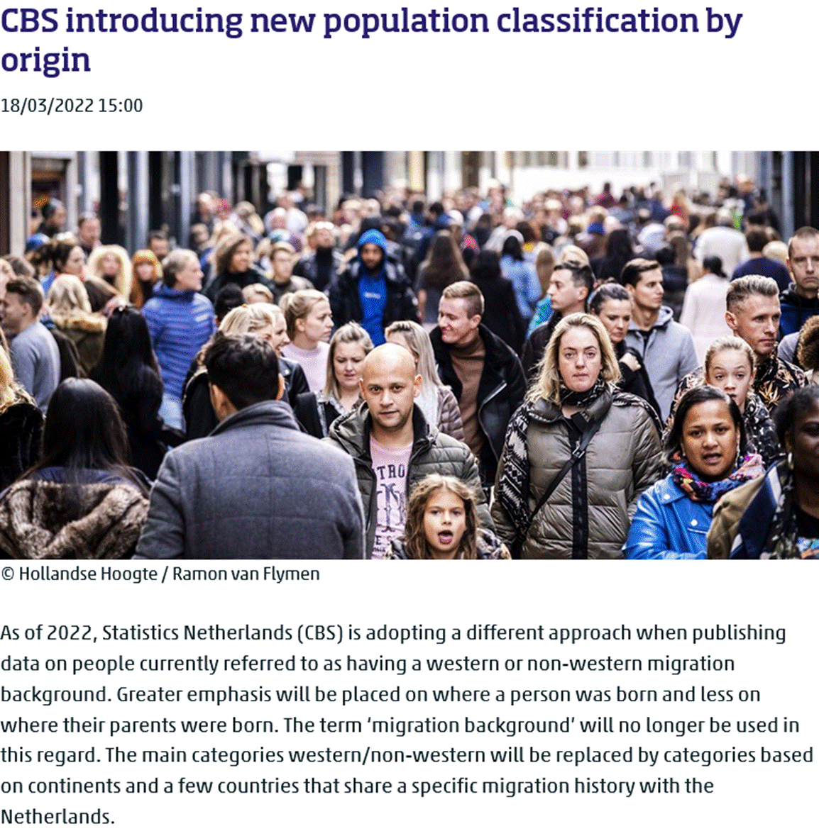 Failing to competently collect demographic data is one issue, but there are also countries that change their methodologies which hides the scale of demographic change. One of the most recent examples of this phenomenon is the Netherlands which used to collect data that clearly showed the Western and non-Western populations of the country. When the Dutch collected this data, it was possible to determine what the White/European population of the country was – and to reasonably calculate the native Dutch share of the population. However, the Dutch government decided to abandon this model in 2022 and switch to data based upon continent of birth.